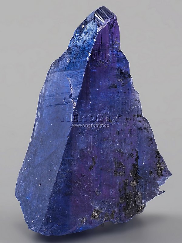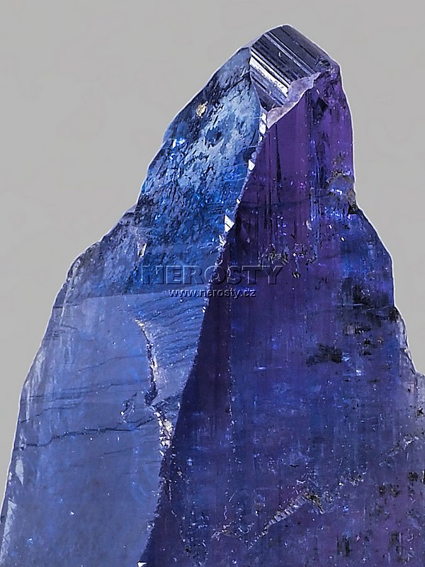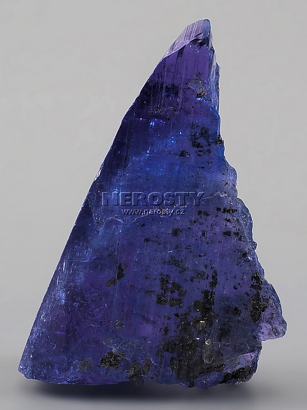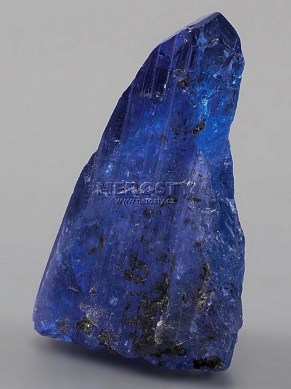 Sytě modrý až modrofialový fragment lesklého tanzanitového krystalu.