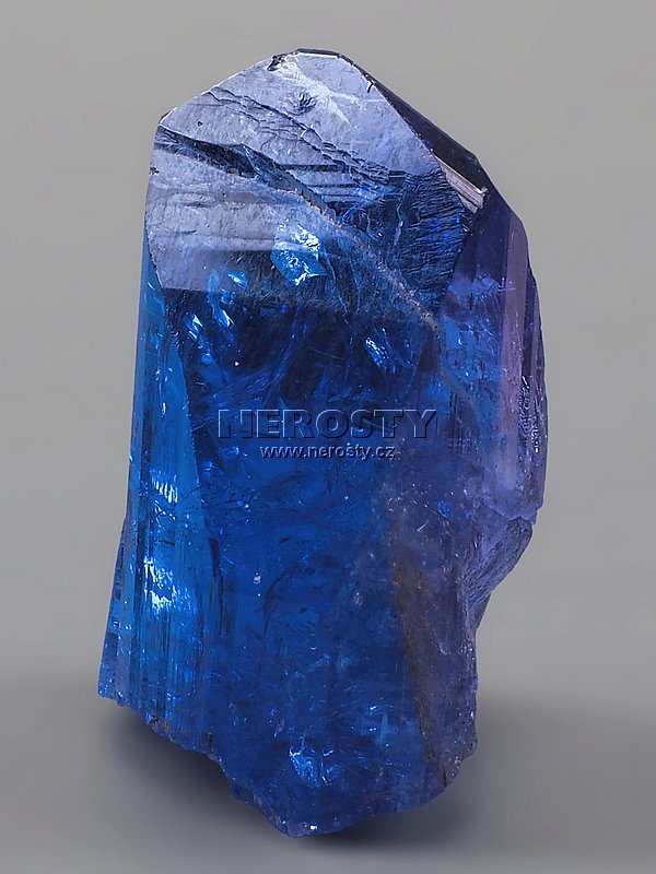 Intenzivně modrý a silně lesklý volně stojící klínovitý krystal tanzanitu.