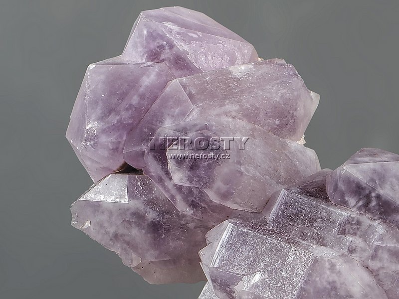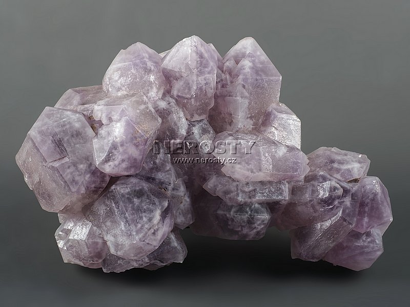 Tento atraktivní vzorek ametystu z málo známé lokality a navíc ve velmi pěkném vývoji je složený z ploše srostlých krystalů ametystu o velikosti do 4 cm a je volně stojící. I když některé krystaly mají drobná poškození, potěší nejen sběratele zajímavých křemenů.
