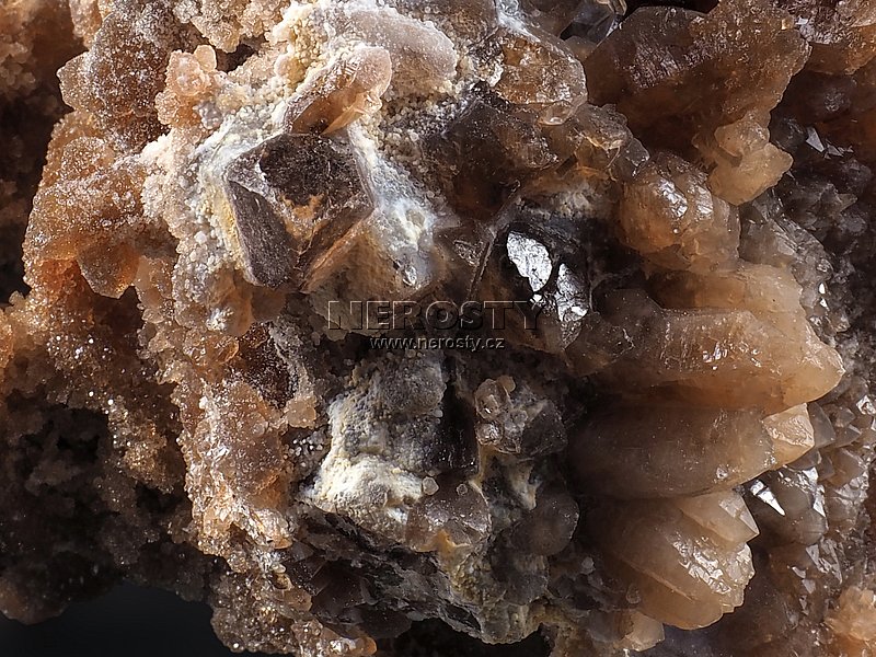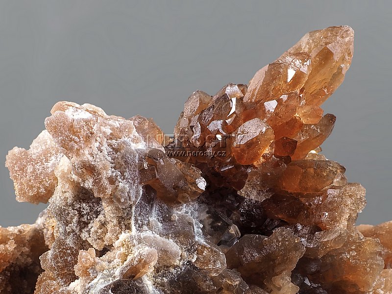 Drúza žlutohnědých krystalů citrínu z Maroka.
