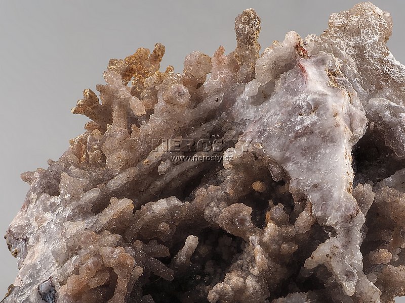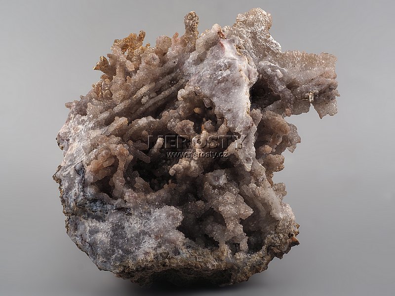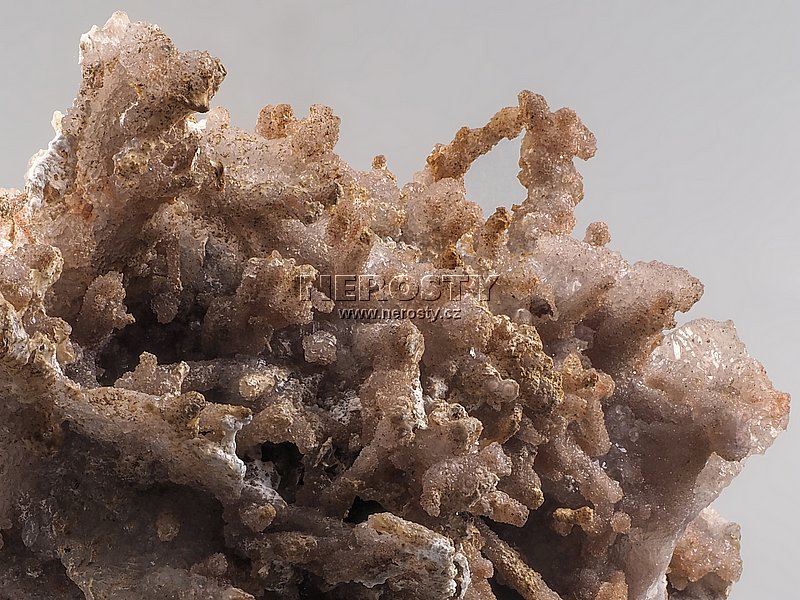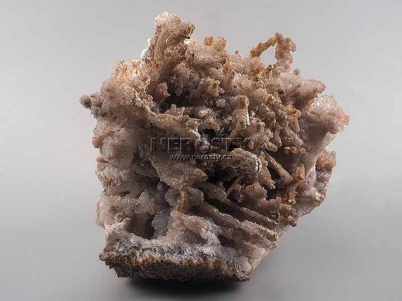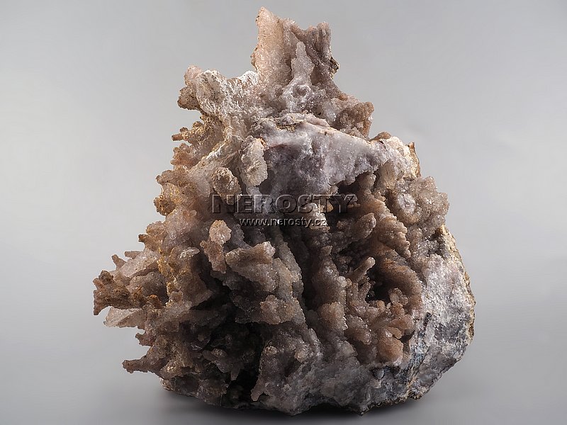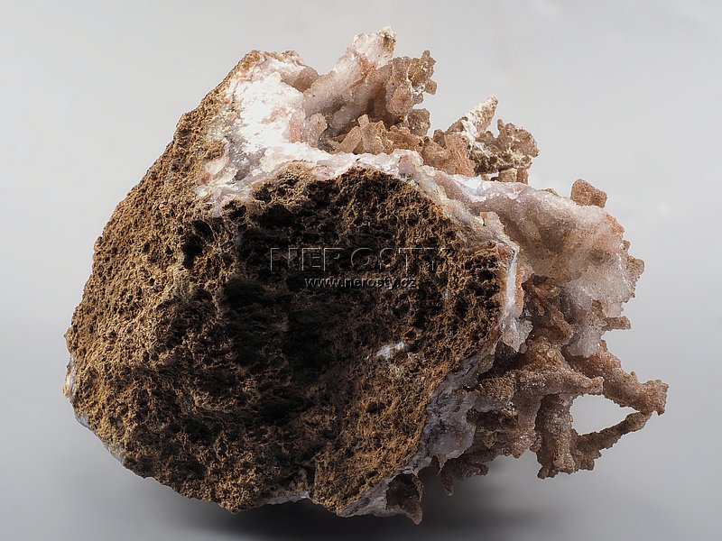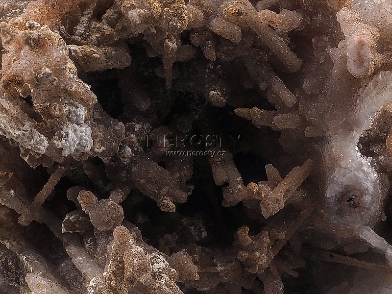 Podložka vzorku je část chalcedonové geody do jejíž dutiny vyrostly fantaskní útvary složené z tisíců drobounkých krystalů.